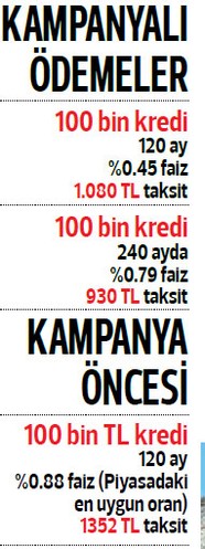 Hürriyet'ten Gülistan Alagöz'ün haberine göre, Emlak Konut GYO, konutta yeni bir kampanya başlattı. 15 Temmuz darbe girişimi sonrası ilk kampanya seferberliğini başlatan Emlak Konut, seferberlik için de düğmeye bastı. Ağustos 2016’da 120 ay vade, yüzde 0.70 faiz ile konut satışı yapılmıştı. Şimdi ise vade uzadı, faizler daha da düştü. Türkiye’de ilk kez 240 ay yani 20 yıl vadeli konut satışı yapılmasının önü açıldı.