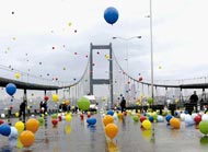 stanbul Büyükşehir Belediye Başkanı Kadir Topbaş, Boğaziçi Köprüsü'nden yaya geçişlerine izin verilmesi konusunda talepleri bulunduğunu söyledi. Topbaş, Alman Yeşiller Partisi Eşbaşkanı Roth'un, köprüdeki "Asya Kıtasına Hoş Geldiniz" tabelasının kaldırılması yönündeki önerisiyle ilgili olarak, "Gerçek olan bir şeyi, 'ne derler ki' düşüncesiyle kaldırmayız" dedi. |