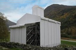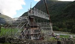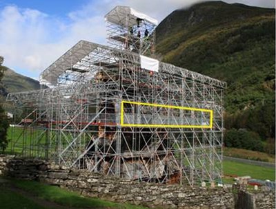 Norveç Borgund’daki ünlü Stave Kilisesi’nin korunması amacıyla 800 yıllık ahşap çatı padavralarının değiştirilmesine yönelik yapılan restorasyon çalışmasının önemli bir bileşeni Layher Çatı Sitemi ve altyapı olarak Allround (flanşlı) kule iskelesi oluyor.