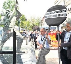 Kurulu delegeleri, maden kazalarında yaşanan ölümleri protesto amacıyla,