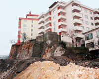 Zonguldak'ın Kilimli beldesindeki sahil yolu kesiminde, istinat duvarı yapılmadan yol inşaatına devam edilmesi, meyilli arazinin üst tarafında oturan mahalle sakinlerini tedirgin ediyor. Kayalık bölgede yol yapmak için dinamit patlatılması sonucu, çevredeki binaların temellerinde oynama olduğunu iddia eden mahalle sakinleri, tedbir alınmadığı