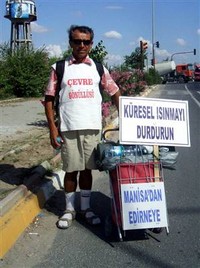 Küresel ısınmaya dikkat çekmek isteyen çevre gönüllüsü öğretmen