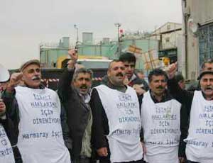 işçilerin, "Direne direne kazanacağız", "Yaşasın onurlu mücadelemiz", "Marmaray