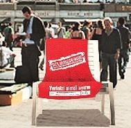 merkezlerine ve meydanlara erken rezervasyonu temsil eden havlu örtülü şezlong