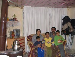 Yıkık gecekonduların ve dik bir yokuşun ardından vardığımız tek göz gecekonduya, kayınvalidenin yurtdışına çıkmasıyla başlarını sokabilmişler. Tavan, akıtmasın diye muşamba kaplı. Odada bir soba harıl harıl yanıyor. Parça halıların üzerine battaniye örtülerek soğuk kesilmiş.