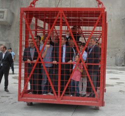 hattındaki demir kafesin içine binerek, 270 metre yükseklikten, Deriner Barajını