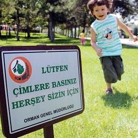 çimlere basınız. Her şey sizin için” levhaları diktirdi.