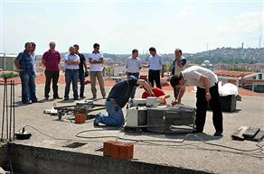 Sakarya'da Marmara depreminde az hasar gören 6 katlı boş binada yapay deprem üreten cihazla yaklaşık 5.5 şiddetinde deprem oluşturuldu. Projede betonarme binalar için depreme dayanıklı tasarım kurallarının uygulanabilirliği test edilecek.