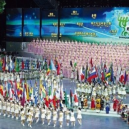 ve katılımcı tüm ülkelerin bayraklarının geçit töreniyle başladı. Ayrıca Huangpu