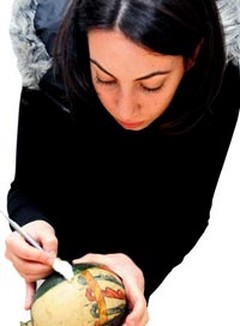 yumurtaları elden geçirilirken, üzerlerinde kalem işi