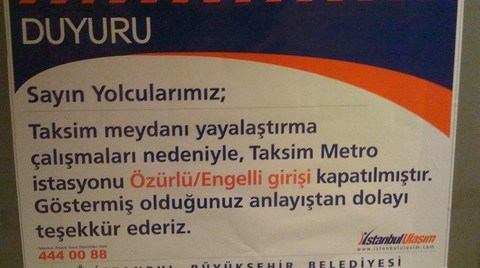 Muhalif kent topluluklarının ve çeşitli kurumların tüm itirazlarına rağmen Taksim Meydanı Yayalaştırma Projesi çalışmaları devam ediyor. Muhalif grupların itiraz gerekçelerinden çok Taksim civarında yarattığı trafikle haftalardır basının ve İstanbulluların gündeminde kalan proje çalışmaları, Taksim’i geçiş olarak kullanan yayaları ve engellileri de olumsuz etkiledi.