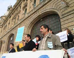“Kadıköy ve çevresi küçük ABD olmayacak” pankartı açan demiryolcular adına basına açıklama yapan BTS Genel Merkez Yöneticisi Soner Önal, Haydarpaşa Gar Binası’nın 26 Nisan 2006’da “Kentsel ve Tarihi Sit Alanı” ilan edilerek korumaya alındığını hatırlattı. Gar binasında, Haydarpaşa’nın satılması için yeniden düzenleyecek yabancı firmalar için kaçak başlatılan inşaatı mahkeme kararı ile durdurduklarını hatırlatan Önal, “Ancak ‘yasalar bize uymuyorsa, uydururuz’ mantığını güden TCDD yetkililerinin, kaçak inşaatı basit bir tadilatmış gibi göstererek kuruldan onay aldı ve böylece inşaata yasal kılıf sağladı” diye konuştu.