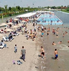 Belediyesi'ne ait kent park içindeki yapay plaj,