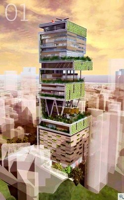 Hindistan’ın en zengin adamı, dünyanın en pahalı evini yaptırıyor. 27 katlı 'ev'de, fitness salonundan, mini sinemaya, otomobil bakım/tamirattan eğlence merkezine kadar pek çok işlev bulunacak.