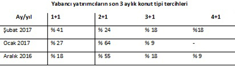 Yabancı yatırımcılar artık sadece İstanbul’da değil, Türkiye’nin birçok şehrinde gayrimenkul yatırımı yapıyor. TÜİK verilerine göre Ocak 2017’de yabancılara 1.386 konut satıldı. Yabancılara yapılan konut satışları bir önceki yılın aynı ayına göre yüzde 5,2 azaldı. Ocak 2017’de ilk sırayı 441 konut satışı ile İstanbul aldı. İstanbul’u sırasıyla 264 konut satışı ile Antalya, 137 konut satışı ile Bursa, 72 konut satışı ile Ankara, 70 konut satışı ile Sakarya ve 62 konut satışı ile Yalova izledi. Peki, yabancı yatırımcılar konut yatırımında hangi tip daireleri tercih ediyor? Markalı konut projelerinin ne kadarını yabancı yatırımcılar alıyor? İşte yabancı yatırımcıların ev satın alırken tercih ettikleri… Markalı konut satışlarının yüzde 4’ü yabancılara Türkiye gayrimenkul sektörü ile ilgili kapsamlı ve detaylı gayrimenkul bilgi, analiz ve araştırmalar sunan gayrimenkul bilgi servisi REIDIN’in Yeni Konut Fiyat Endeksi Şubat 2017 sonuçları yabancı yatırımcıların markalı konut projelerdeki yatırımının bir önceki aya göre arttığını gösteriyor. Şubat ayında markalı konut projeleri kapsamında gerçekleştirilen satışların yüzde 4’lük (son 6 aylık ortalama yüzde 10) kısmı yabancı yatırımcılara yapıldı. Ocak 2017’de markalı konut projeleri satışın yüzde 3’ü, Aralık 2016’da ise yüzde 8’i yabancı yatırımcılara gerçekleşmişti. Yabancı yatırımcıların tercihi 1+1 daireler! Peki yabancı yatırımcılar en çok hangi konut tiplerini tercih ediyor? Yabancı yatırımcılar yatırımlarında ağırlıklı olarak 1+1 tipi daireleri tercih ediyor. Şubat 2017’de de bu değişmiyor ve yabancı yatırımcıların tercih noktasında ağırlıklı olarak 1+1 özellikteki konutlar öne çıkıyor. 1+1 dairelerden sonra en fazla tercih edilen konutlar yüzde 24 ile 2+1’ler, yüzde 18 ile 3+1 ve yüzde 18’le 4+1 daire tipleri oluyor. Kaynak: Zingat.com