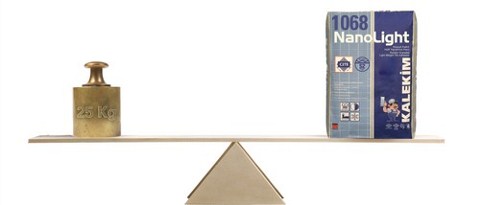 Türkiye yapı sektörünün lider markalarından Kalekim tarafından üretilen NanoLight, kauçuk katkılı S2 sınıfı esnekliğe sahip oluşuyla Türkiye’de bir ilk... İçerdiği nanoteknolojik katkılar sayesinde NanoLight, 25 kg’lık bir yapıştırma harcının yaptığı işi 15 kg’lık ambalajıyla yapıyor. NanoLight içeriğindeki geri dönüştürülmüş kauçuk dolgular ile