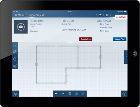 Bosch’un lazerli uzaklık ölçeri GLM 100 C Professional, kullanıcıları için önemli bir işi kolaylaştırıyor ve kullanıcıların ölçme kamerası uygulamasını kullanarak şantiyenin boyutlarını ayarlayabilmelerine ve belgelendirebilmelerini imkan tanıyor. Tablet ve PC’lere uyumlu uygulama sayesinde kullanıcılar ve planlamacılar, kalem kâğıt kullanmak yerine planlarını dijital olarak 1.50 ölçeğinde daha hızlı ve kolay çizebilecekler. Uygulama, sadece yeni planlar için değil, mevcut planların doğru olup olmadığını anlamak için de kullanılabiliyor. Uygulama sayesinde çalışma sonuçları PDF olarak kaydedilebiliyor ve şantiyeden e-mail yoluyla doğrudan gönderilebiliyor.