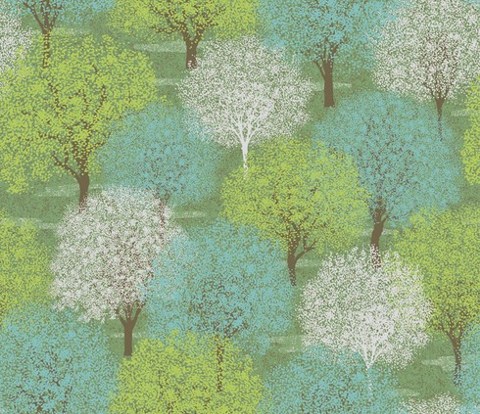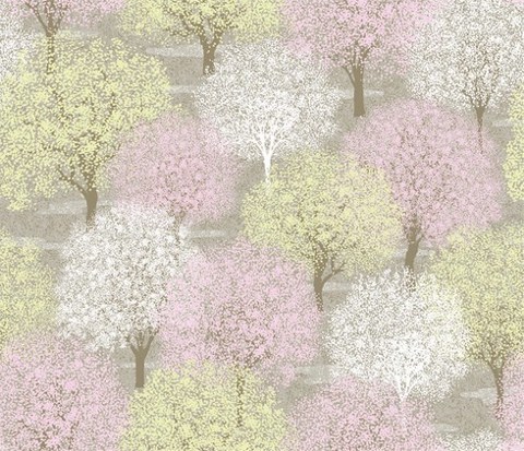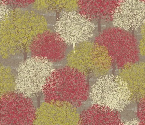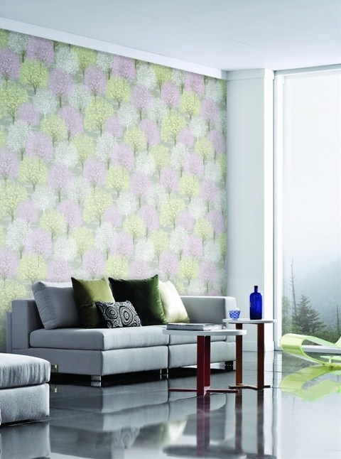 ‘Fashion Studio’ içerisinde bulunan rengarenk ağaç desenlerine sahip duvar