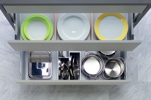 Nova Pro Deluxe’un çekmece yanaklarının iç bölümlerinin düz olması ve yanak enlerinin inceliği saklama alanlarını optimize ediyor. Kazanılan saklama alanı standart bir mutfaktaki çekmecelerin toplamı düşünülürse ek bir çekmeceye eşdeğer kapasitede oluyor. Ayrıca bu özellik çekmece içlerinin temizliğini de kolaylaştırıyor. Nova Pro Deluxe’ın, sarsıntısız, senkronize bir şekilde açılıp, kapanması ekstra konfor sağlarken, çekmeceler güç gerektirmeden, hafif bir dokunuşla açılabiliyor. Çekmece ön panelinin ve çekmecenin kolaylıkla, aletsiz çıkartılıp, tekrar monte edilebilmesi temizlik sırasında ve taşınma durumunda büyük kolaylık sağlıyor.