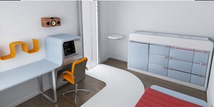 Proje içeriğinde, bireyin dışarı çıkarken yanına alması gereken eşyaları (gözlük, yön değneği, saat vs.) koyması için özelleşmiş “çıkış tepsisi” aksesuarı; bireyin aradığını kolaylıkla bulabilmesi ve eşyaları organize edebilmei için özel tasarlanmış “braille” kodlu dolap kulpları; eşyalarını düşürme riskini ortadan kaldıran özelleşmiş çukur raflar; tüm elektrik donanımı kabuğunun içerisinde saklayan “braille pc kiosk” yer almaktadır.